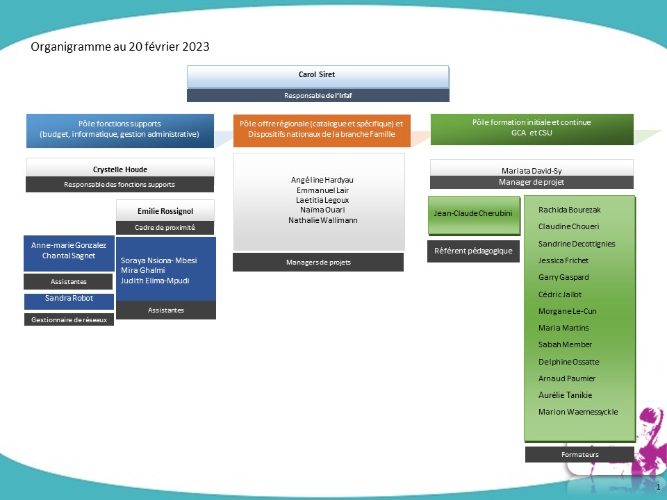 Afin de répondre aux demandes spécifiques des Caf, l’équipe pédagogique permanente de l’Irfaf est appuyée par des praticiens détachés des Caf ou des intervenants extérieurs